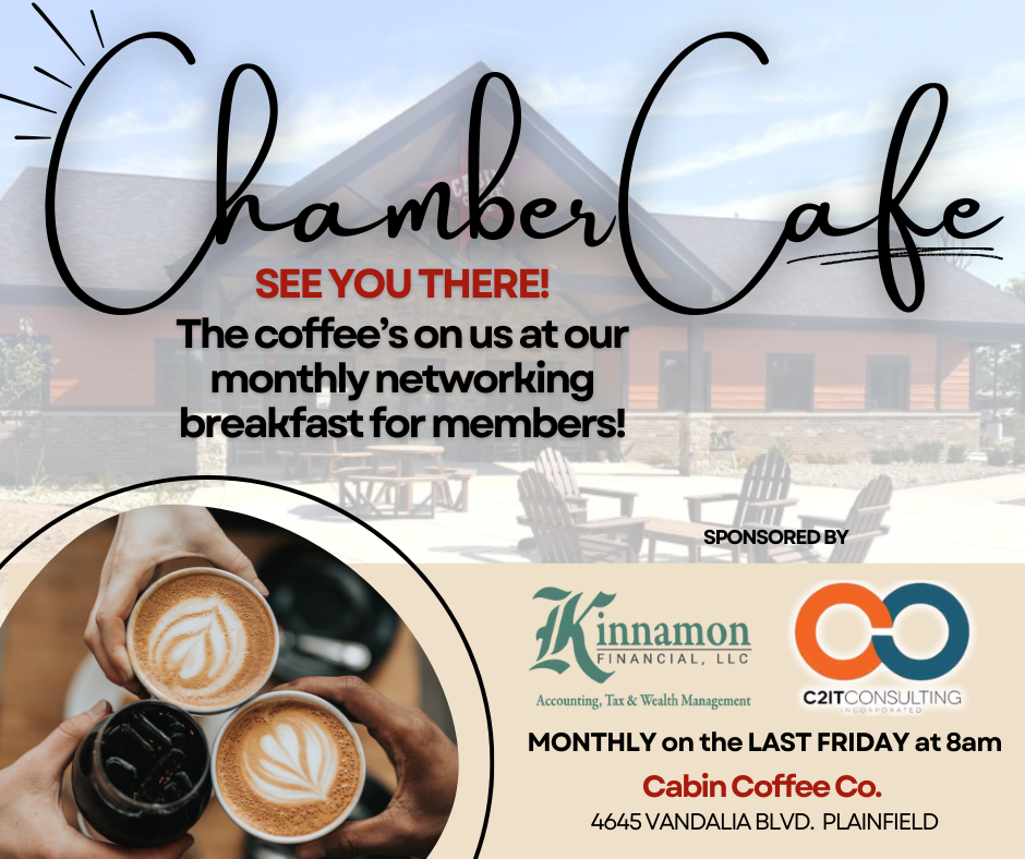 Start your day with great coffee and even better connections at our Chamber Café networking event! Held on the last Friday of each month, we rotate between local breakfast spots to support member businesses. The Chamber treats you to coffee, while you cover your food. It’s the perfect way to kick off your morning with meaningful conversations and new opportunities. We’d love to see you there!