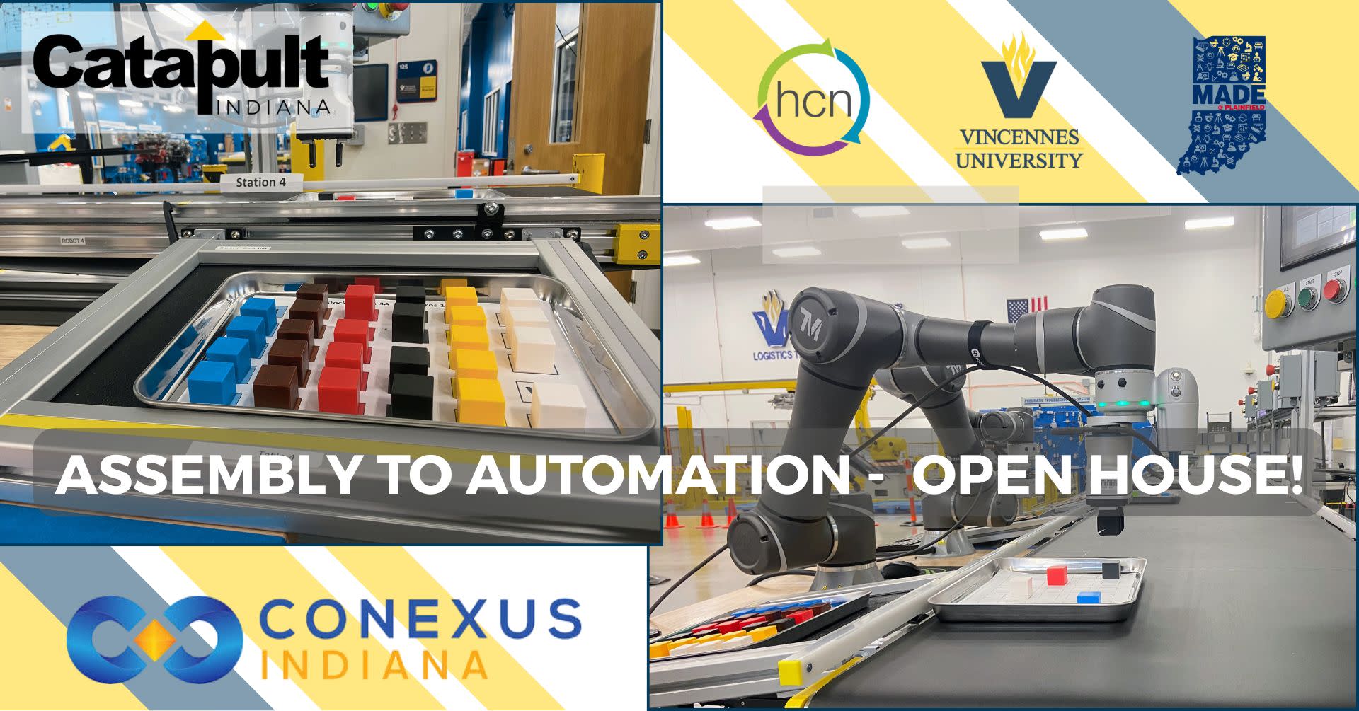 Vincennes University in partnership with Conexus Indiana, Hendricks College Network -HCN and MADE@Plainfield, is launching a hands-on training program built to meet the evolving needs of today’s manufacturing employers.  Using the proven Catapult training system, this next-generation program takes participants from the basics of assembly to advanced robotic manufacturing.