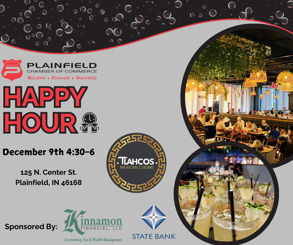 Join us for the Plainfield Chamber Happy Hour, a relaxed and enjoyable after-hours networking event! Connect with fellow professionals in a friendly setting while enjoying your first drink on us and complimentary appetizers (while they last). Don’t miss this perfect opportunity to unwind, make new connections, and strengthen your professional network. We look forward to seeing you there!