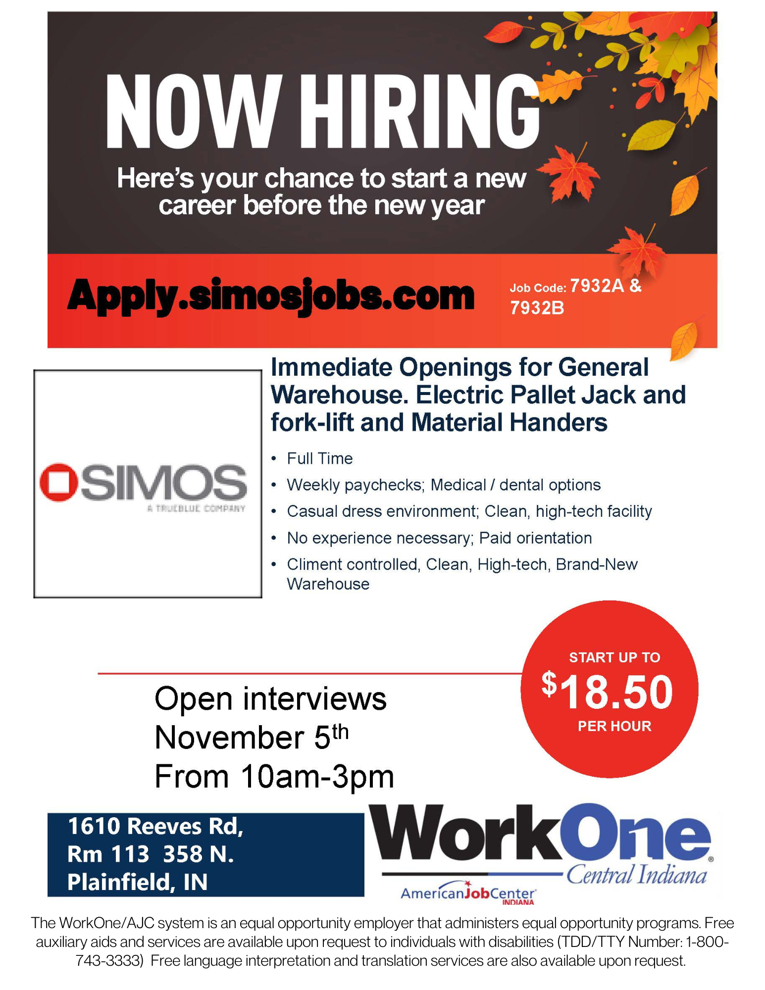 WorkOne Open Interviews for General Warehouse, Electric Pallet Jack and Fork-Life and Material Handlers